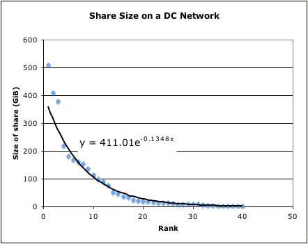 This is a graph of the share size of a small direct connect hub on a recent evening. Nice example of Bradford’s law.